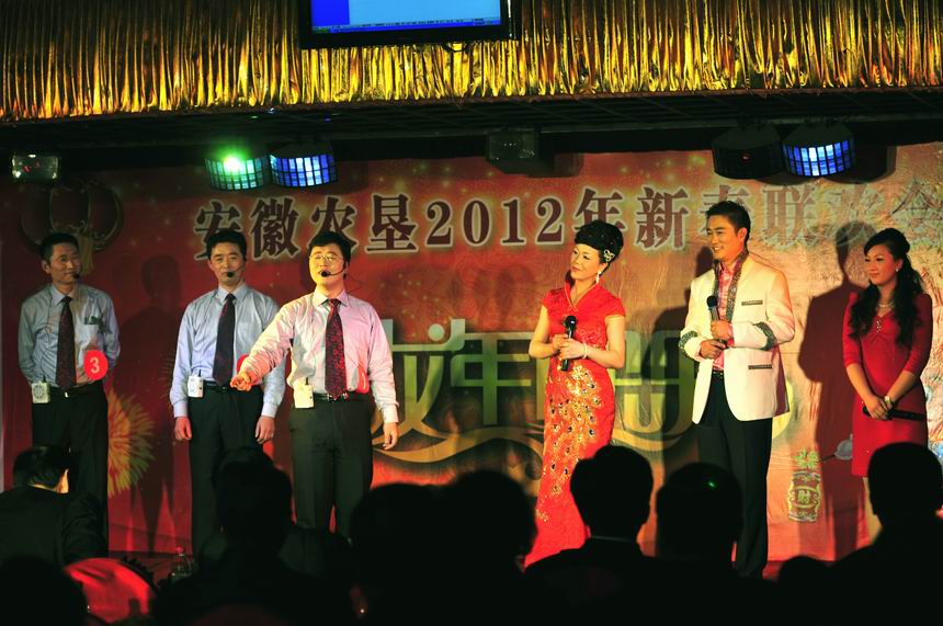 元月19日下午,安徽农垦集团2012年新春联欢会在合肥新长城大酒店隆重举行。集团公司机关全体员工、在肥的离退休老干部及垦直单位代表参加了新春联欢会。集团公司副总经理、联欢会总导演刘超致激情澎湃的开场词,集团公司党委书记、董事长田文俊发表了热情洋溢的新春致词。