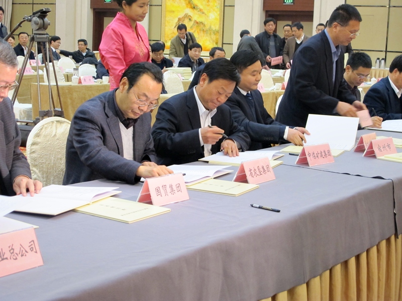 1125下午,省国资委在合肥召开安徽省省属企业支持皖北地区发展工作会议。副省长黄海嵩出席会议并讲话,省直各有关部门领导以及皖北三市七县和各省属企业主要负责同志参加会议。李卓民总经理应邀参加会议并代表省农垦集团与宿州市、怀远县签订战略合作协议。