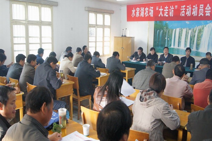 为进一步增强做好新形势下群众工作的责任感、自觉性和主动性,深入贯彻胡锦涛总书记七一讲话精神和党的十七届六中全会、省第九次党代会精神,确保五级书记带头大走访活动取得实效,1110日,水家湖农场党委召开“三级班子带头大走访”活动动员会。农场党委成员以及各基层党支部书记、工会主席、机关中层干部参加了会议。