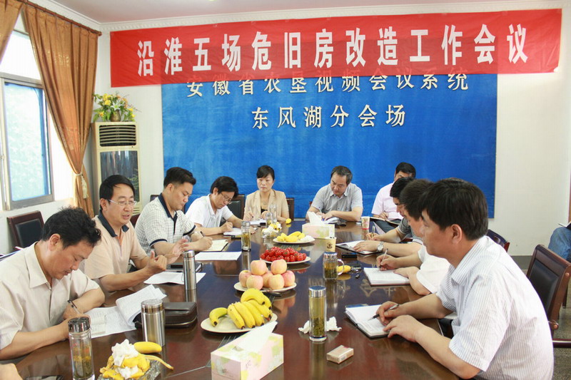 5月31日,安徽农垦集团副总经理刘超在东风湖农场主持召开沿淮五场危旧房改造工作会议。寿西湖、正阳关、淮南、水家湖、东风湖等5个农场和集团公司相关部门、现代农业工程安徽农垦集团负责人参加了会议。