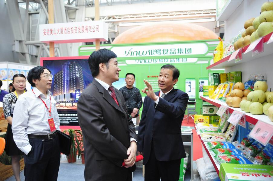 本次交易会上,安徽省农垦集团组织全系统11家产业化龙头企业及其60多个产品参加了展销活动。省农垦集团董事长田文俊参加了开幕仪式,并在仪式结束后与副总经理、皖垦食品集团董事长李家堂陪同国家粮食局副局长郄建伟,黑龙江省副省长吕维峰,安徽省水利厅厅长纪冰、省财政厅副厅长张广寿参观巡视了农垦展厅,并简要向他们介绍了农垦产业化发展和产品品牌建设情况。