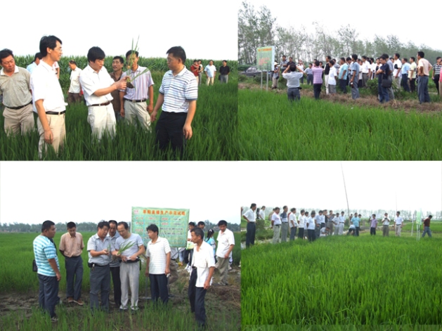 与会人员到龙亢农场现代农业高科技示范区实地观摩了绿旱1号播期试验、大田示范及配套技术研究、旱播旱管生产示范、旱播水管生产示范,旱稻免耕直播生产示范,新品系耐旱与产量比较等试验,听取了有关品种的特性和栽培技术的介绍。