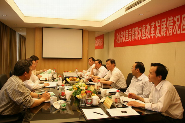 5月12—14日,农业部农垦局副局长胡建锋一行三人到安徽垦区调研农垦改革发展情况。5月12日下午,安徽省农垦集团公司董事长田文俊、总经理李卓民及有关部门负责人在黄山大厦热情接待了胡建锋副局长一行,并就垦区改革发展情况进行了座谈。田文俊董事长向胡建锋副局长全面介绍了安徽农垦近年来发展现代农业、建设专业公司、开展对外合作及各项改革等情况,并与胡建锋副局长进行了交流。胡建锋副局长对安徽农垦近年来改革发展取得的成就给予了充分肯定,认为安徽农垦规模不大,但经营管理水平高,很有特色,富有经验,特别是在发展现代农业、加强垦地合作、转变发展方式、调整产业结构、创新体制机制等方面,值得其他垦区学习借鉴。胡建锋副局长要求,安徽农垦要进一步宣传垦区好的做法和经验,重点宣传农垦在“三农”工作中的示范带动作用;要争取把农垦发展规划列入全省及地方“十二五”发展规划之中;要实施“走出去”发展战略,提高农垦影响力。随后,胡建锋副局长一行在李卓民总经理的陪同下到垦区大圹圩农场和潘村湖农场调研农产品质量追溯体系建设和现代农业建设,对大圹圩农场“倮倮”大米的质量追溯体系和潘村农场种业生产经营进行了深入了解,并给予了充分肯定。