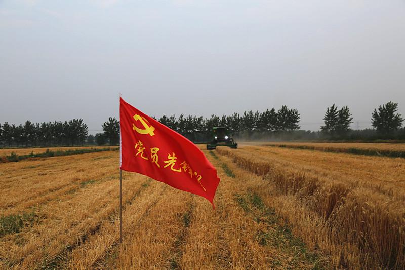 水家湖农场党委围绕午收夏种、秸秆禁烧、农机作业等中心工作,开展共产党员先锋岗活动,在田间地头划分党员责任区,明确收割、禁烧任务与责任;全体党员持证上岗,亮明身份,以岗定责,勇当抢粮保种急先锋。正阳关农场午收现场随处可见党员干部挂胸牌、配袖标,不分昼夜巡查在田间地头,全力服务于午收工作的同时,也接受广大职工群众的监督。田间地头、收割机械、宣传车等,随处可见党旗招展,成为午收最美风景线。