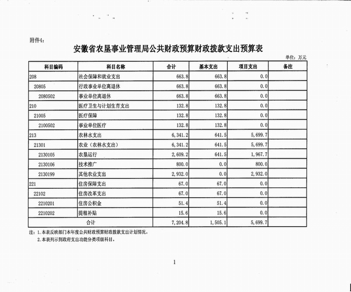 4. 安徽省农垦事业管理局公共财政预算财政拨款支出预算表