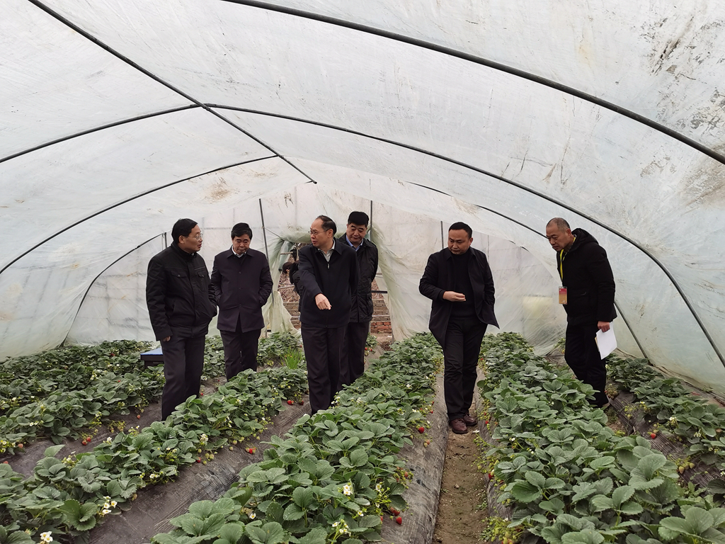 詹先豪到安徽农垦扶贫产业园,调研了解草莓园生产、市场营销、草莓保鲜、草莓生产示范带动作用发挥等情况,对七里塘乡大力发展草莓等高效农业促进脱贫攻坚、助力乡村振兴提出指导意见。座谈会上,农垦驻村工作队长汪升洪简要汇报了2019年驻村帮扶工作情况及2020年帮扶工作计划,七里塘乡党委书记肖成山汇报了七里塘乡2019年脱贫攻坚成效和2020年工作思路,孟庆报主任充分肯定了省农垦集团驻村帮扶工作,感谢省农垦集团对七里塘社区脱贫攻坚工作的长期支持。王良贵就万头奶牛基地项目规划建设的合作对接提出思路建议。