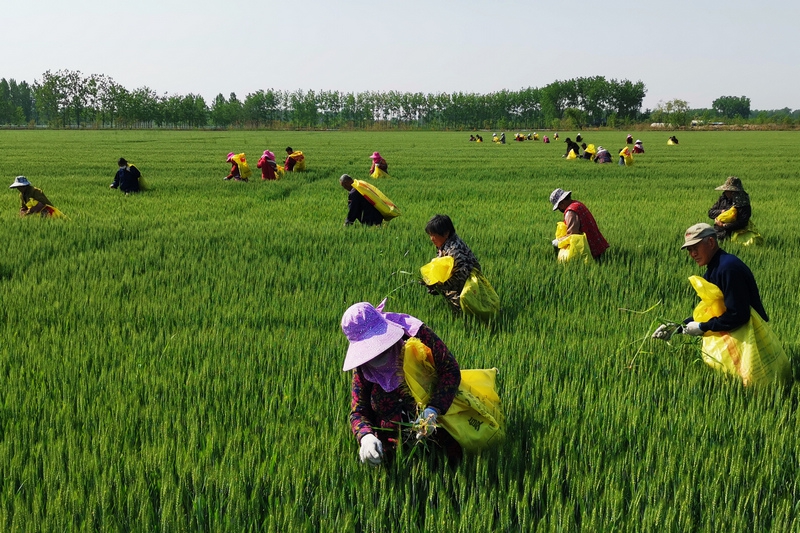 近日,农垦方邱湖农场公司紧抓当前有利天气,在对统一经营的2000余亩小麦实施两次“一喷三防”的基础上,同步开展去杂去劣工作,为午季小麦优质高产打下坚实基础。(杜庆银  摄)