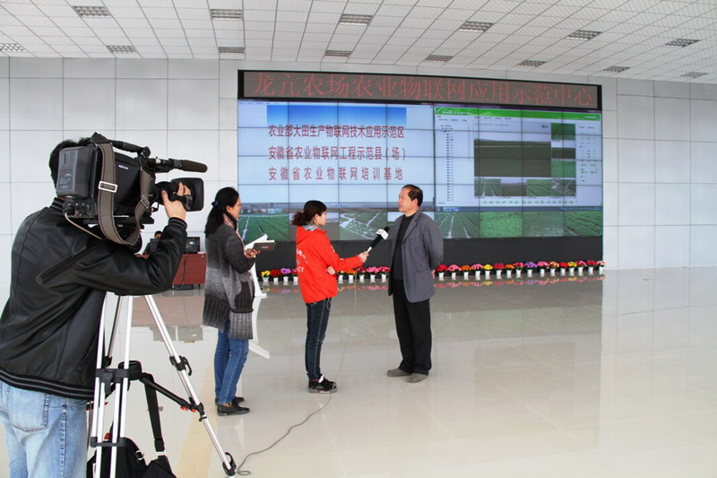 安徽卫视记者深入农场农业物联网应用示范中心、智能温室大棚、农业社会化服务中心、小麦大田、农业科技园区等场所,拍摄了大量视频资料,采写了农业生产素材。(李峰