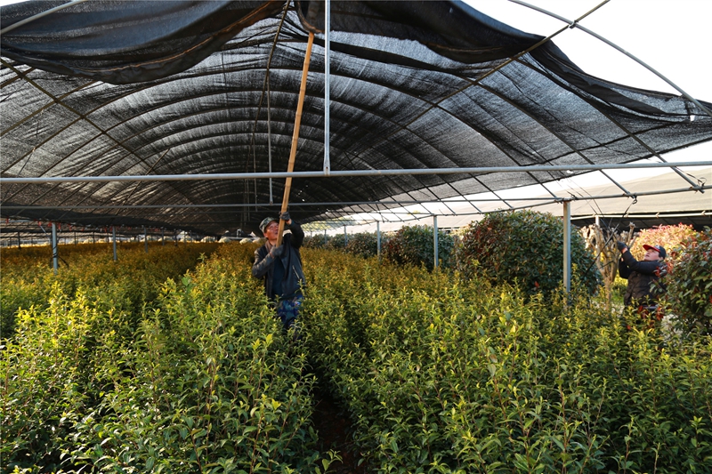 为应对近期低温阴雨天气,预防气温骤降给春茶生产带来的不利影响,3月2日,茶业集团所属茶场公司加紧对名优茶园实施防霜冻措施,全力保障春茶生产增产增收。在敬亭山锦绣坡,22台防霜风扇全部开启;在祠山岗黄金芽基地,工作人员正在为茶园加盖防霜网。(张志超)