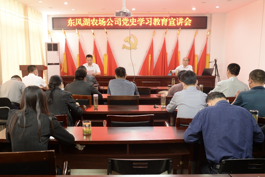 513日,安徽农垦集团东风湖农场公司党史学习教育宣讲会在公司会议室举行。淮南市委宣讲团成员黄士轩教授作宣讲。公司纪委书记褚镇主持宣讲会。农场公司全体党员干部、入党培养对象、积极分子、预备党员参加会议,聆听宣讲。