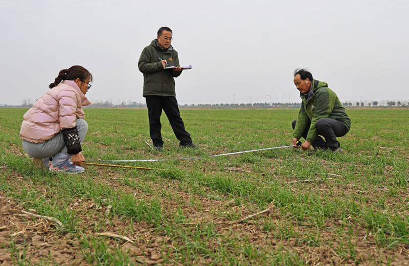 农业技术人员通过实地查看土壤墒情和麦苗长势,对基本苗叶片数、分蘖数、主茎叶龄和根系生长状况情况进行系统调查,划分出一、二、三类麦田因地因苗制宜、控促结合分类指导做好小麦冬季田管,结合天气条件适时开展病虫草害综合防治,为夏粮增产丰收打好基础。(撰稿李龙 审稿徐和兴