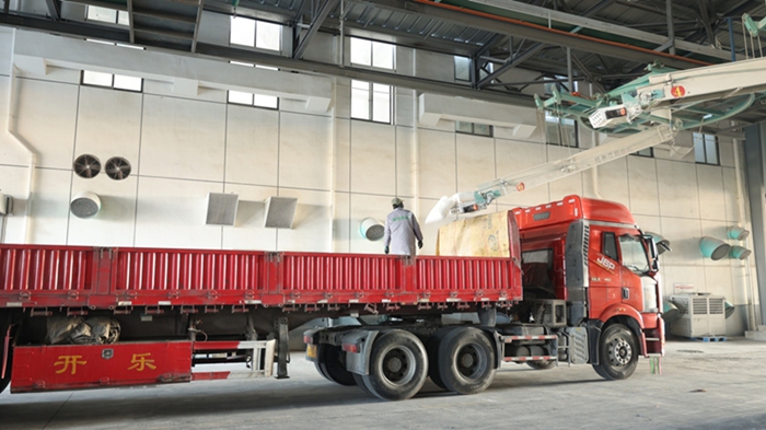 雁湖面粉公司将加工好的面粉装车销售。(周文娟 摄)