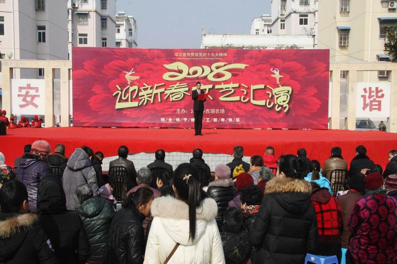 文艺汇演在喜庆热烈的《欢乐锣鼓》中启幕,由场属各单位排演的20个节目逐一登台,内容丰富,形式多样,既有传统歌舞、戏剧、快板、花鼓灯、诗朗诵,又有街舞、广场舞、武术等贴合现实的节目。氛围喜庆、衔接紧凑,宣扬了十九大精神和核心价值观,激发了干群投身农场发展的奋进精神和争先意识,赢得现场观众的阵阵掌声。