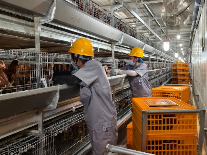 7月26日早晨,江南茶海禽业公司百万羽蛋鸡养殖场内,随着最后一车青年鸡顺利进舍入笼,首批青年鸡转群工作顺利完成,33.4万只80日龄的优质蛋鸡,在青年鸡场“光荣毕业”,正式转入蛋鸡养殖场。