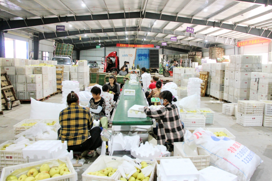 图为皖垦果业公司包装库内职工正在包装“翡翠酥梨