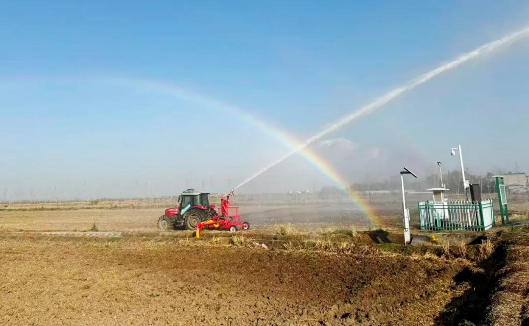 华阳河农场针对部分晚稻茬小麦土壤墒情不足的情况,迅速组织喷灌抗旱,实施精准补水,确保稻茬麦齐苗越冬。(李龙)