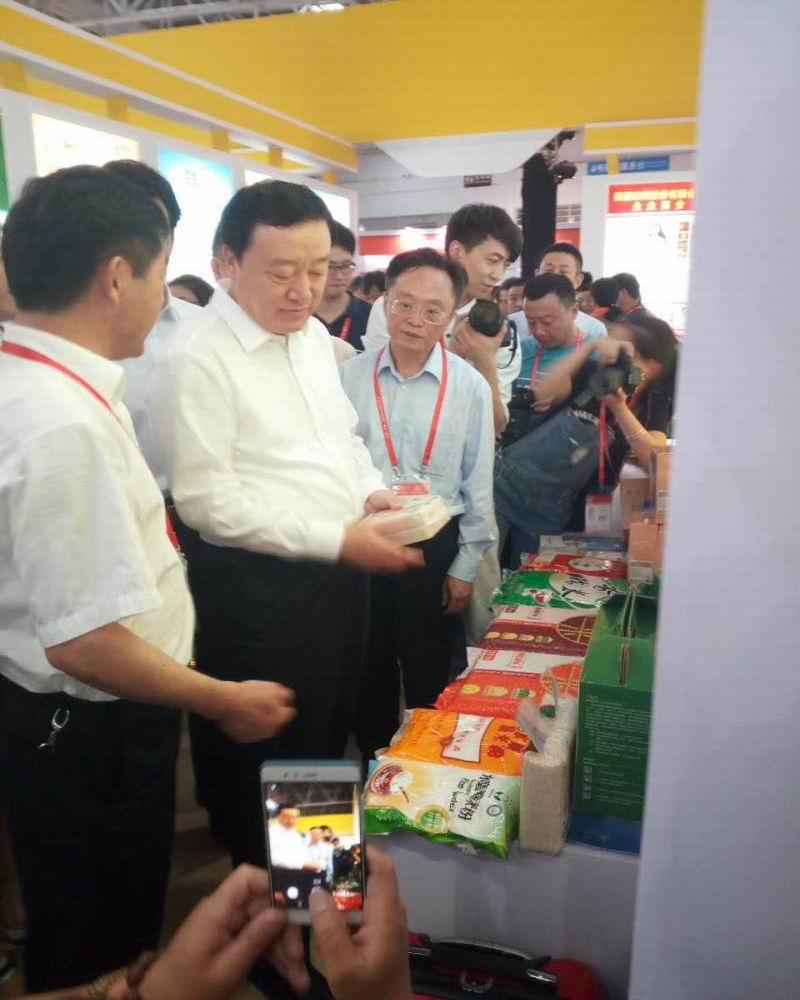 国家粮食局局长张务锋巡视了倮倮米业展区,听取了倮倮产品在三品一标、质量追溯体系建设等情况介绍,对展示的新品产生了浓厚兴趣。