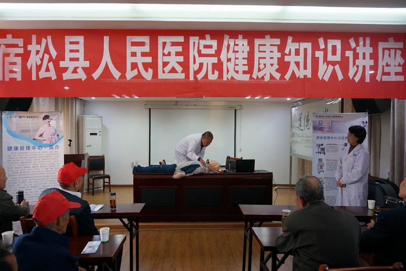 县医院体检中心专家王洪艳在讲座上以关注生命 重视健康为主题,讲解了如何预防慢性病,并从合理膳食、适量运动、保持愉快、平衡心态等方面,向老年朋友们传授了怎样吃、怎样运动才能更有益于身体健康。该院内科、ICU主任沈华东采取讲解与演示相结合的方式,指导老年人在遇到紧急情况时如何自救和急救他人。现场老年朋友们还就自身健康问题与两位专家进行了咨询解答互动。