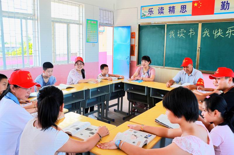 为迎接新学年的到来,唤起少年儿童对读书的热爱并养成良好阅读习惯,华阳河一场关工委请来4名大学生志愿者,于828在小学举办我读书,我快乐主题读书交流活动。