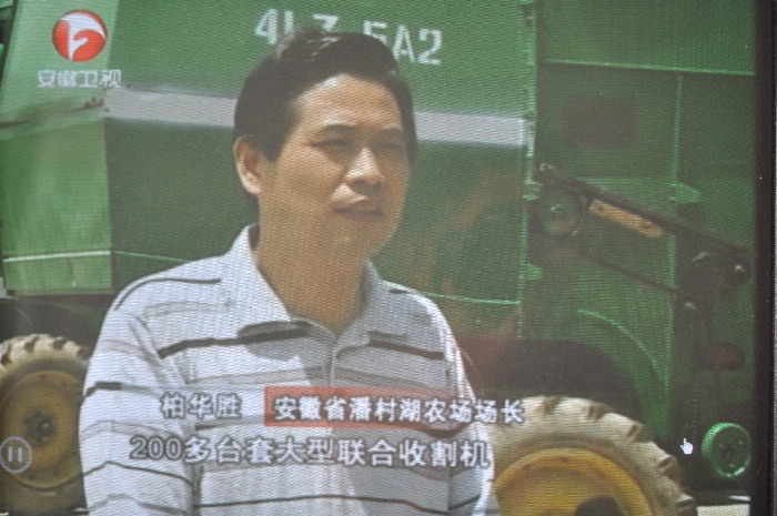 为了确保小麦大面积收割的质量和进度,全省最大的小麦良种繁育基地安徽潘村湖农场,今年新引进了36台大马力联合收割机,并且对场里的所有农机手都进行了一轮操作技能培训。潘村湖农场场长柏华胜对记者说我们今年投入了200多台联合收割机,一旦开镰,我们3万多亩小麦三天就能抢收完毕。”(杨登宏)