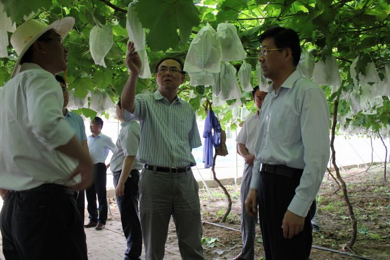 ,六安市长毕小彬率寿县县长程俊华一行到正阳关农场检查指导午收夏种和秸秆禁烧工作,并对农场高效农业发展作了调研,副场长程希文等陪同。