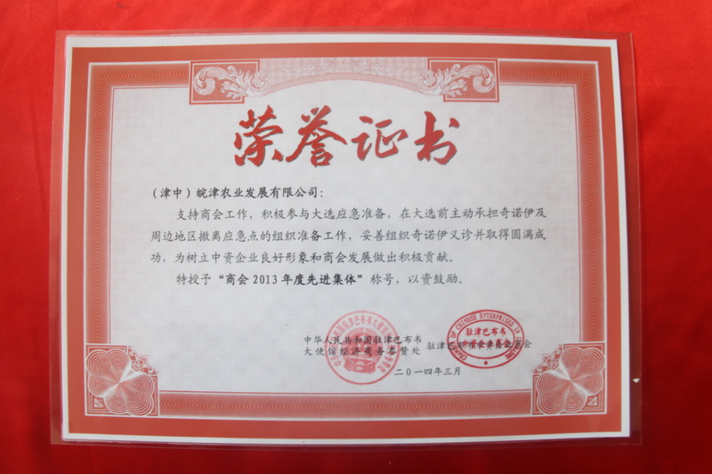 320下午,中国驻津巴布韦大使馆洋溢着浓烈的喜庆氛围,大使馆携手驻津中资企业商会在这里举行了2013年年会。中国驻津大使林琳、经赞处参赞韩兵以及华商会、华联会、商会、55驻津中资企业负责人出席年会。安徽农垦皖津公司应邀参会并获评先进集体荣誉称号。