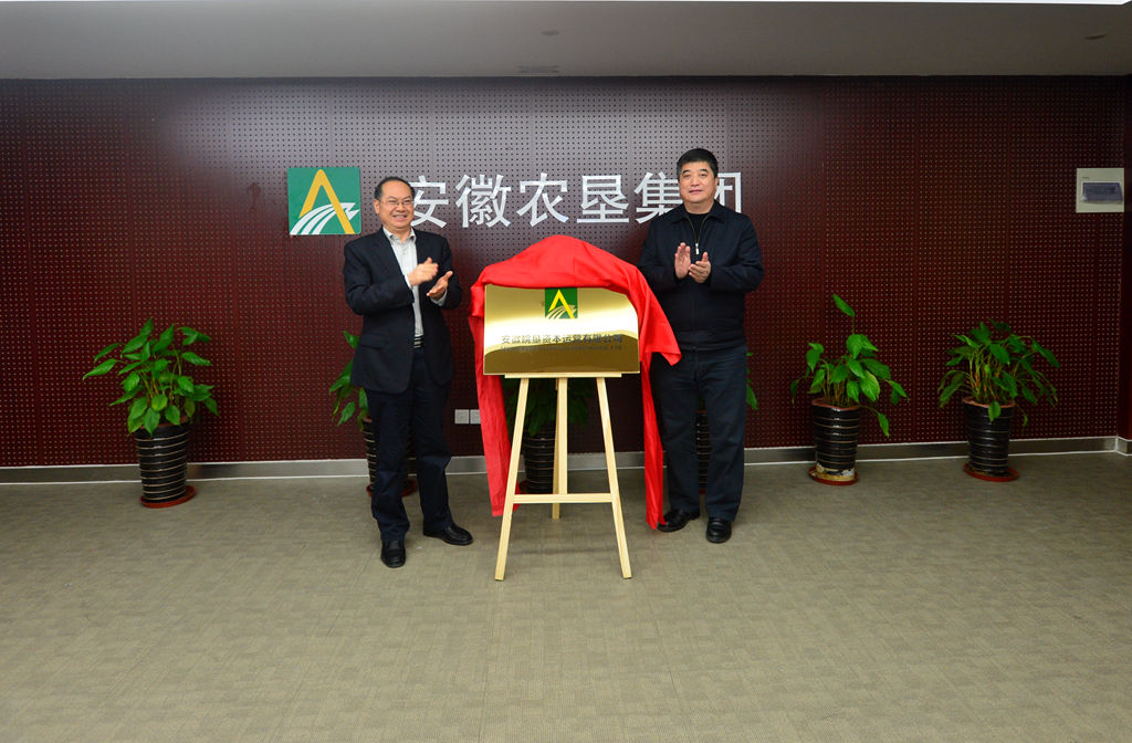 詹先豪与王良贵为安徽皖垦资本运营公司揭牌;高有荣与陈军为安徽皖垦资产管理公司揭牌。