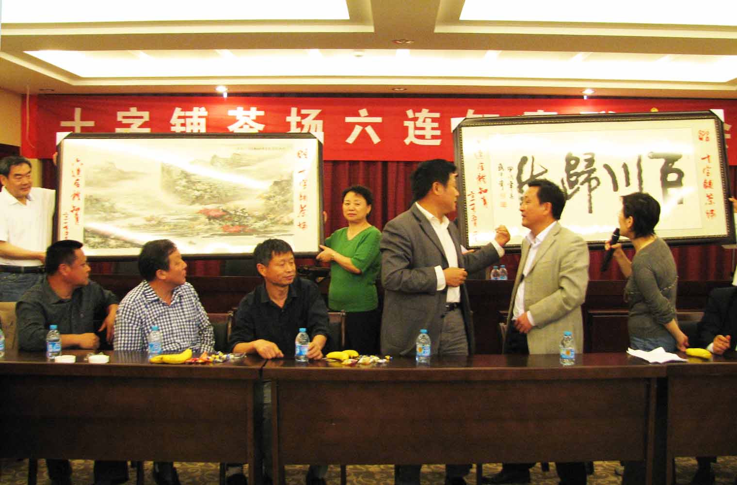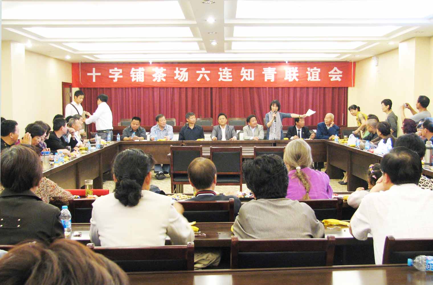 绿色五月,春意正浓。安徽农垦十字铺茶场茶海碧波荡漾,风送茶香,十字开发区建设如火如荼,日新月异。5月1日,原安徽生产建设兵团四师十六团一营六连知青纷纷从美国、法国、 上海、南京等地赶来,怀着无比激动的心情相聚在第二故乡——十字铺茶场。 当天下午,知青们参观了十字铺茶场及六连故地,重访了当年的战友和乡亲,当看到欢迎他们的张张笑脸、条条悬挂的标语横幅、鲜嫩滴翠的茶园、郁郁葱葱的苗木基地和整齐划一的开发区厂房,曾经生活战斗在这里的知青们,感慨万千,摘下几片吐露着芬芳的茶叶捧在手中,一幕幕往事涌现在眼前……,发自内心地表达情怀,我爱你——第二个故乡! 六连是当年兵团的标兵连,锻炼培养了许多优秀人才,在他们的人生中写下了浓墨重彩的一笔,他们怀着感恩的心重返第二故乡,重拾记忆,重燃激情。 下午3点30分,十字铺茶场举办六连知青联谊会。十字铺茶场场长邱升水等领导同志以及当年六连连长、指导员、部分老职工前来参加联谊会。 会上,邱升水在致欢迎词时说,知青们为十字铺茶场建设贡献了青春,贡献了才智,是有功之臣,祝贺你们如今身体依然健康、事业更加辉煌,热忱欢迎大家常回家走走看看。随后,他简要介绍了茶场近年来建设发展情况,并真诚地希望大家提出进一步发展的宝贵意见。知青们争相发言,激情四溢,介绍了本人的工作生活情况,真诚感谢茶场干部职工当年的亲切关怀和教育培养,祝愿第二故乡明天更加美好,一致表示以后多回来看看,为茶场建设再献才智。有的知青热泪盈眶,彼此之间相互交谈、互相祝福,有着说不完的话、道不完的情。 知青们还向茶场赠送了两幅精美字画表达谢意。(尹三友)