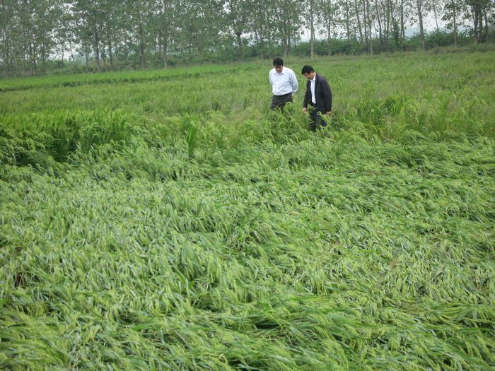 台风大雨袭击,致使水稻、棉花等农作物严重受灾。据初步统计,农作物倒伏面积达