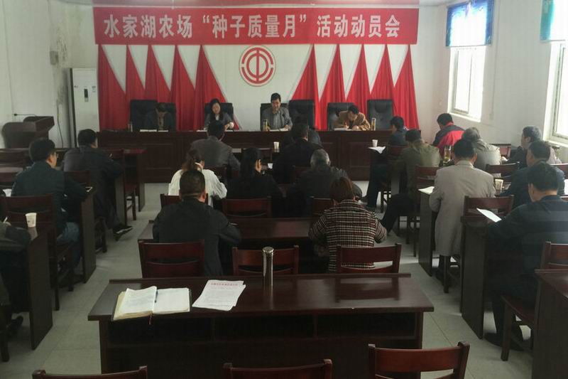 ,水家湖农场召开专题会动员部署种子质量月活动启幕。场领导刘国强、董梅及各分场、种业分公司负责人、农技人员参会。