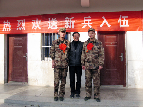 1211下午,焦岗湖农场机关办公楼前锣鼓阵阵,礼花朵朵,热烈欢送新兵入伍仪式在这里隆重举行。副场长苏守乐受场党委委托亲自为两名新兵佩戴大红花,勉励他们好好学习,刻苦训练,报效祖国,为父母争光,为农场添彩!