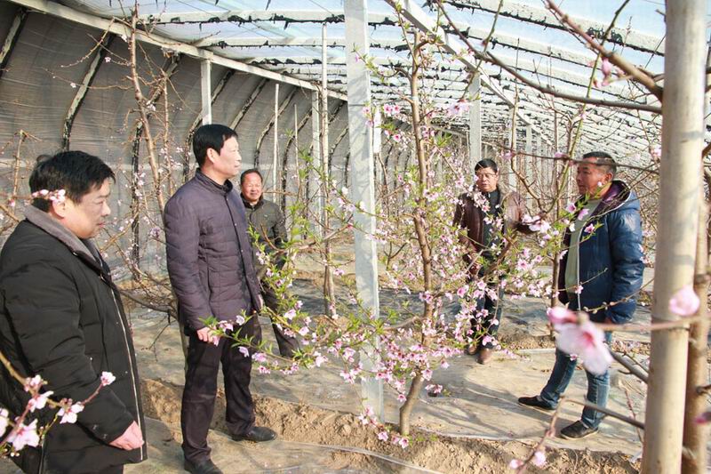 叶华富一行察看了一分场高效设施园果树生长情况,向分场负责人和现场职工详细询问了大棚水果生产管理情况。棚外虽料峭春寒,棚内却暖意融融,杏花争奇斗艳、正在授粉,桃花含苞开放,预示着2018年的美好和丰收。叶华富期待全场上下学习贯彻好中央1号文件精神,在实施乡村振兴战略中发展好现代农业,把质量兴农、绿色兴农、品牌强农、效益优先落到实处,继续在质量、绿色、品牌上做文章,把质量当生命,把绿色做实,把品牌擦亮,产出更高效益,让全场现代农业发展和职工增收持续保持良好势头。