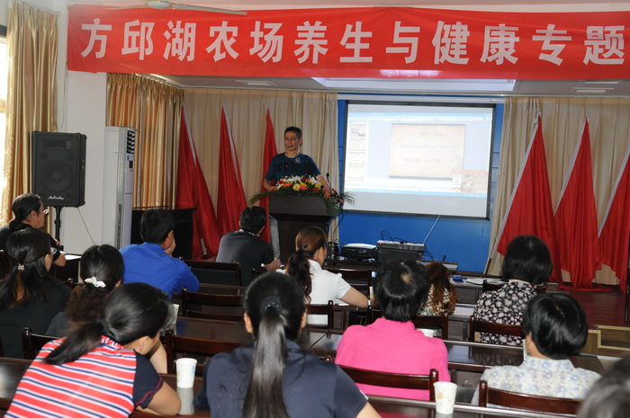 为丰富职工群众的精神文化生活,提高健康养生和自我保健意识,714日下午,方邱湖农场邀请蚌埠市养生专家宋祥来场举办养生与健康专题讲座,作为以人为本、执政为民主题教育系列活动内容之一。场管理人员、职工居民、退休老同志近60人到会听讲。