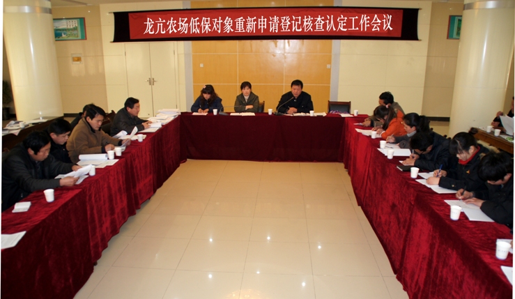 根据《安徽省城市居民最低生活保障工作操作规程》和怀远县《关于城乡低保对象重新申请登记核查认定工作的通知》精神,龙亢农场将对全场现有的城乡低保对象重新申请登记、核查认定,以规范全场城乡最低生活保障工作。为做好此项工作,农场专门印发了工作方案,成立了核查领导小组,明确了重新申请登记核查认定的对象、范围、实施程序和家庭收入核实计算方法。