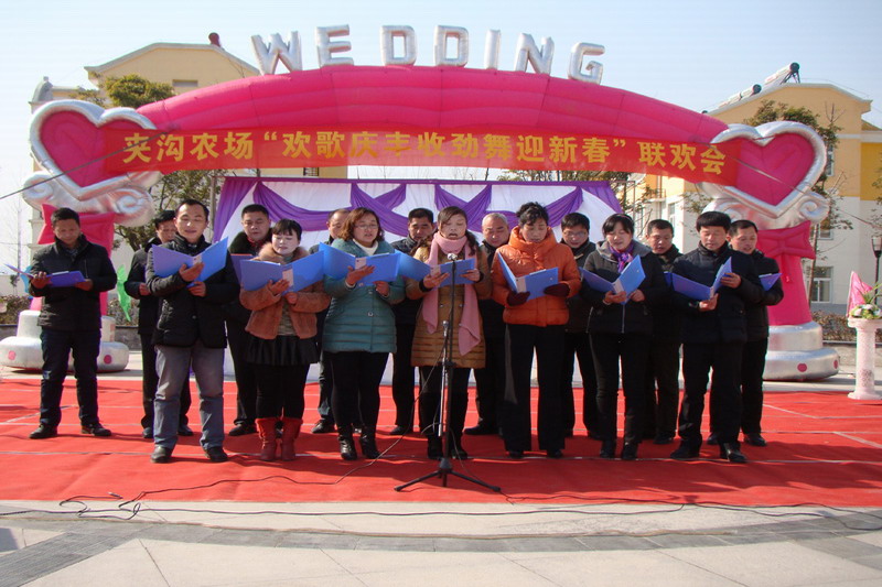 25,年关将近,夹沟农场举办欢歌庆丰收劲舞迎新春联欢会,欢乐喜庆、节俭开演。场党委副书记、社区管委会主任夏长信致辞,党委书记温广信等领导同职工群众一道观看了精彩节目。
