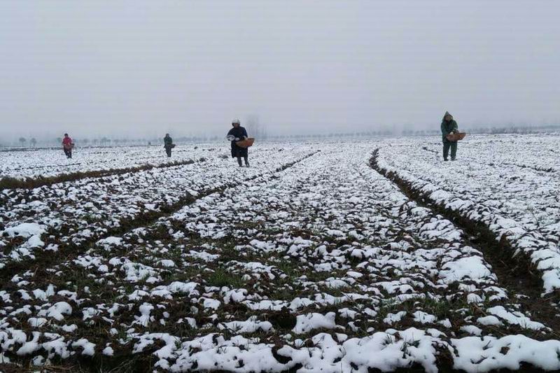 28,天长市喜降一场春雪,大圹圩农场抓住这一有利时机,迅速调度人力机械,及时开展科学田管、踏雪追肥,加速苗情转化升级,为小麦后期生长打下良好基础。