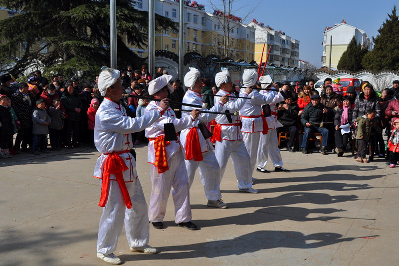 演出节目既有当地传统的跑旱船、担花挑、打钱杆、舞腰鼓,还有六老汉颂党恩两夫妻赶集逛新城等群众自编的说唱节目,展现了当地富有浓郁特色的乡土文化,以广大群众喜闻乐见的文艺形式唱响了改革开放好、新农村建设好的时代主旋律。