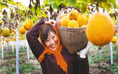近年来,安徽省大圹圩农场在搞好粮食生产的同时,瞄准市场大力发展高效特色农业,今年种植的160多亩瓜蒌、380多亩茭白套养泥鳅喜获丰收,预计年收益超过140万元。图为大圹圩农场职工在收获金黄色的瓜蒌。(人民日报201712310李炳旺、刘延摄影报道)