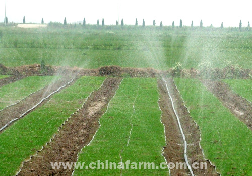 在安徽农垦方邱湖农场全场干群的共同努力下,在技术人员的全程指导下,方邱湖农场旱育秧取得实质性进展,目前秧苗已育齐且长势喜人,旱改水其它相关工作正在紧张进行。图为微喷浇灌场景。 |