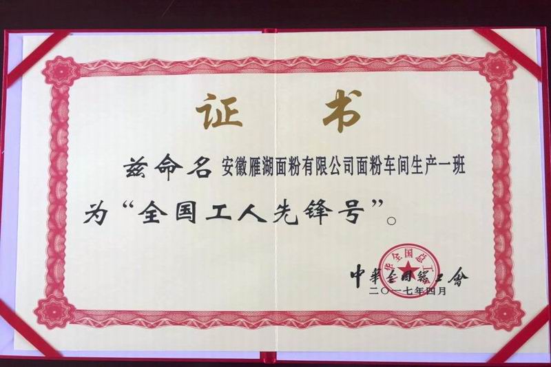 日前,安徽农垦雁湖面粉有限公司面粉车间生产一班被中华全国总工会命名为“全国工人先锋号”,弘扬其工匠精神、劳模精神、劳动精神和作出的时代性、先进性、示范性贡献。