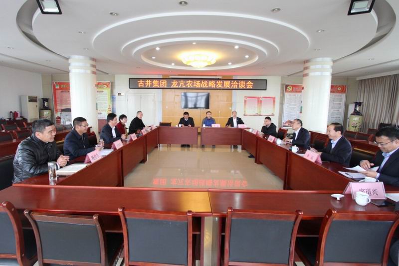 1116,古井集团总裁李培辉偕采购、发展、运营总监一行,到访龙亢农场洽谈战略合作。农场领导马振辉、王戴群、王永玖、杨俊生等参加洽谈。