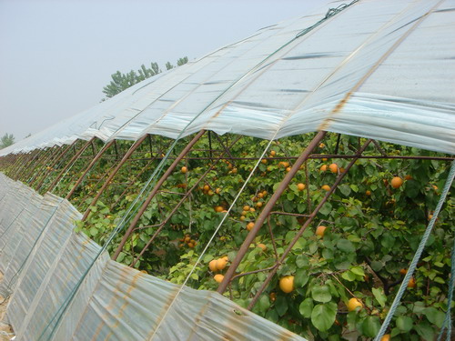 近几年,砀山果园场在现代农业发展中积极推行科学、先进、高效的农业栽培方式——设施栽培,至2006年底,全场共计建设大棚近30个,目前大棚杏喜获丰收,已采摘上市,出园价一直保持10元/公斤以上,一个棚的产量约2500公斤,一个棚的收入可达2.5万元。