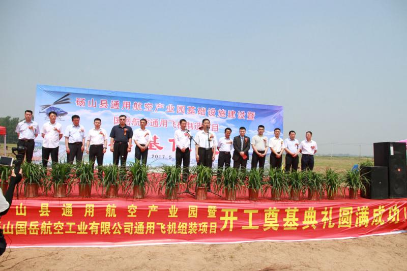 522,砀山县通用航空产业园暨国岳航空通用飞机组装项目开工奠基典礼在砀山果园场举行。安徽农垦集团副总经理陈仁虎、砀山县长陶广宏出席并致辞,集团经合部、砀山果园场和砀山县委县政府、开发建设单位负责人参加。