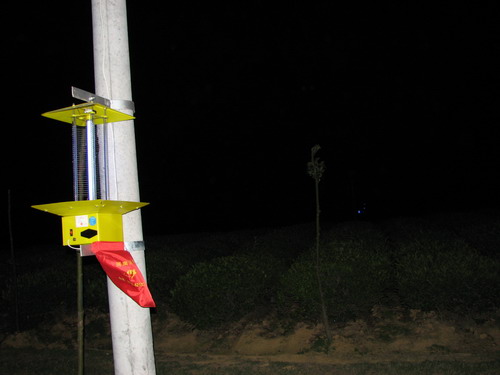 宣郎广茶业总公司示范茶园采取灯光诱蛾物理防治病虫害效果好