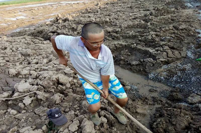 711,烈日无情地炙烤着大地,42度的地面高温,让人喘口气都很困难。张长业跟平常一样巡堤,头顶草帽、肩扛铁锹、脚穿胶鞋,衣服一次又一次被汗水湿透。