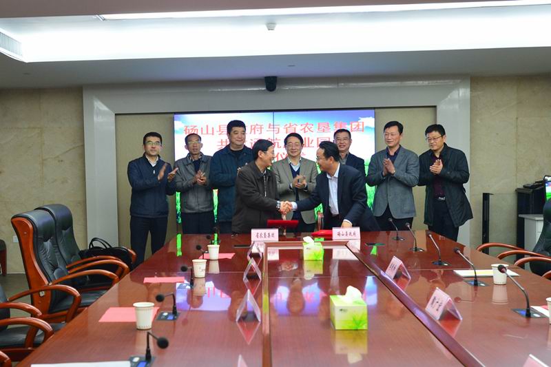 农垦集团总经理刘超、党委副书记王良贵、副总经理陈仁虎和砀山县长陶广宏出席,陈仁虎、陶广宏签署合作协议,县政府相关部门和集团经合部、土地部、砀山果园场主要负责人现场见证并对接工作。