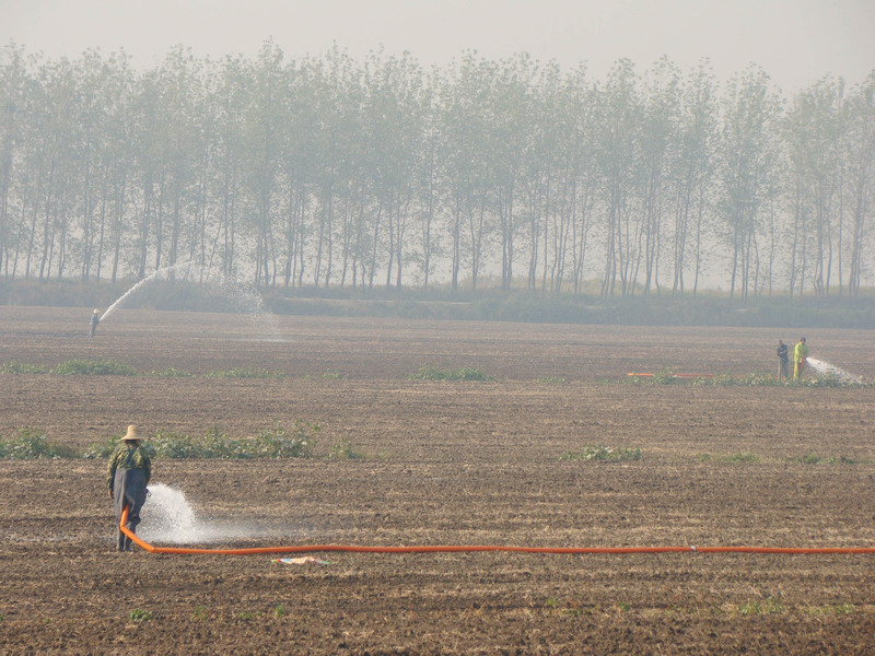 为确保一播全苗,全场职工不等不靠,以人定胜天的精神立即转入了抗旱浇水、浇灌出苗的紧张工作。现在,每天凌晨六点钟左右,农场的田地里,便随处可见“人工降雨”的胜景。至发稿时至,全场已浇灌土地9600多亩,预计至16日,全场万余亩土地便可浇灌结束。