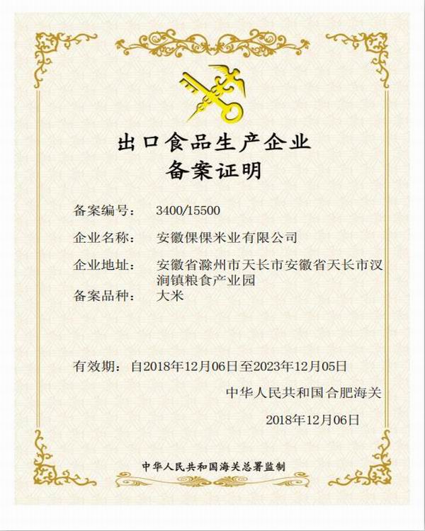最终,倮倮米业成功获得合肥海关颁发的《出口食品生产企业备案证明》,为争取到首批中粮集团大米出口代加工计划和今后双方长期稳定合作奠定了很好的基础。