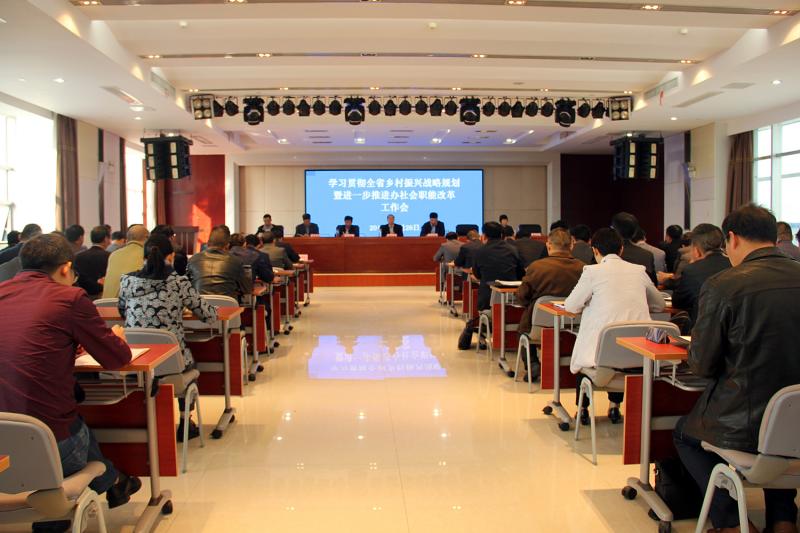 1026,安徽农垦集团召开学习贯彻全省乡村振兴战略规划暨进一步推进社会职能改革工作会,党委书记、董事长詹先豪出席并讲话,党委副书记王良贵主持会议,集团公司领导王占廷、李丰荣、高有荣、姜三豹出席,机关各部室、所属各农场及社管部门负责同志参加。会上,总会计师高有荣传达学习了省委省政府近期出台的《安徽省乡村振兴战略规划(2018-2022年)》。王占廷通报了农场办社会职能改革进展情况,并对下一步推进工作进行部署。皖垦茶业集团祠山岗茶场交流了分离办社会职能的经验做法。