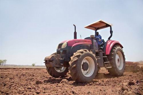 津巴布韦发展农业的自然条件较好,但农业生产方式落后,技术和管理也十分欠缺,不得不依靠进口粮食和援助解决吃饭问题。津方邀请有实力的中国农业企业赴津开展农业合作。津方出土地,中方出资金、技术和管理,双方的务实合作,在土地中结出果实。图为在津巴布韦奇诺伊的温亚尼农场上,皖津公司一名员工开着中国产“东方红”拖拉机犁地。 (新华社记者许林贵摄)